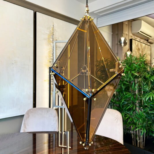 The Modern Champagne Prism Glass Pendant, stimulate the senses and create a seductive atmosphere with this wonderful sculptural light. An elegant modern focus, ambient lighting at its best. A sumptuous touch.
